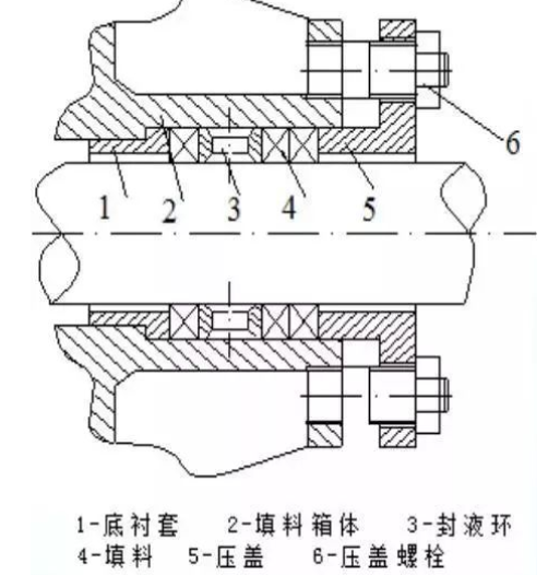 盤根一般由較柔軟的線狀物編織而成,通過截面積是正方形的條狀物填充在密封腔體內(nèi),靠壓蓋發(fā)生壓緊力,壓緊填料,使填料壓緊在密封外表(軸的外外表和密封腔)上,發(fā)生密封作用的徑向力,達到密封作用。