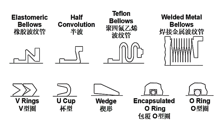 輔佐密封包含動(dòng)、 靜環(huán)的密封圈, 大都做成O形圈、 V形圈、 矩形圈、 楔形圈或梯形圈。