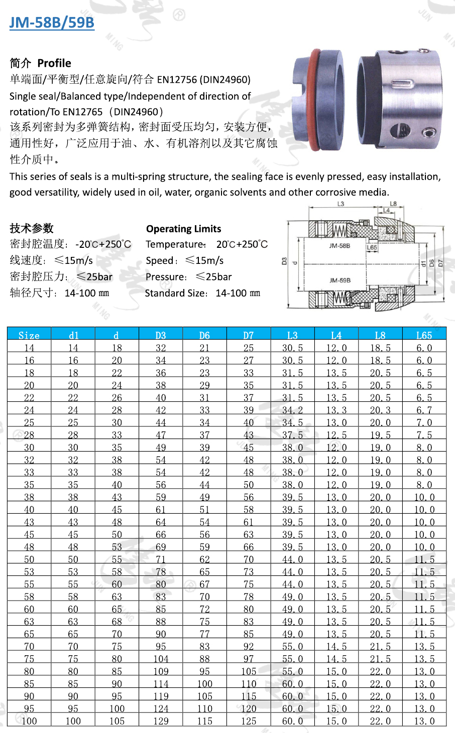 該系列密封為多彈簧結(jié)構(gòu),密封面受壓均勻,安裝方便,通用性好,廣泛應(yīng)用于油、水、有機(jī)溶劑以及其它腐蝕性介質(zhì)中。