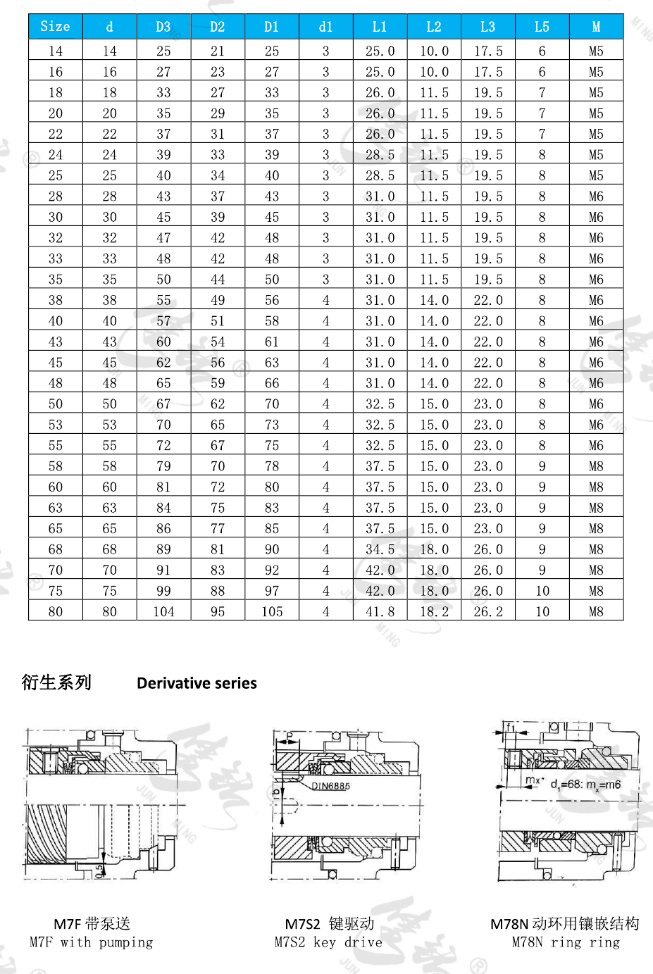 M7N系列應(yīng)用廣泛,互換性強(qiáng),密封環(huán)非緊嵌入,替換方便。推環(huán)由傳動(dòng)搭子卡住,防止彈簧脫落。靜環(huán)可以限位,彈簧行程受限制,避免碳環(huán)過度磨損。
